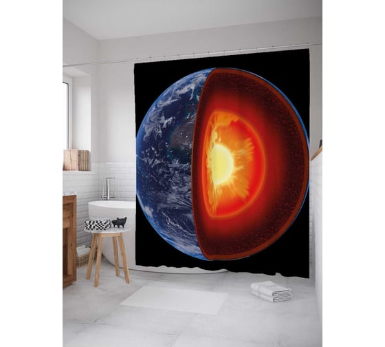 Штора (занавеска) для ванной JoyArty "Ядро планеты" из сатена, 180х200 см с крючками, sc_37992