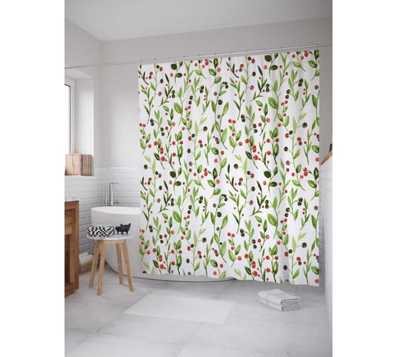 Сопутствующие товары для шторки-занавески JOYARTY Ягодные кусты из сатена, 180х200 см с крючками