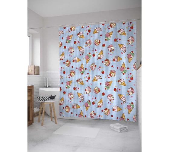 Штора (занавеска) для ванной JoyArty "Ягодный пломбир" из сатена, 180х200 см с крючками, sc_36303