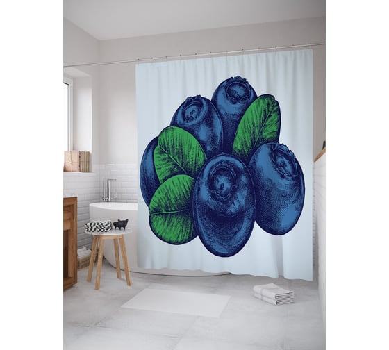 Сопутствующие товары для шторки-занавески JOYARTY Ягоды черники из сатена, 180х200 см с крючками