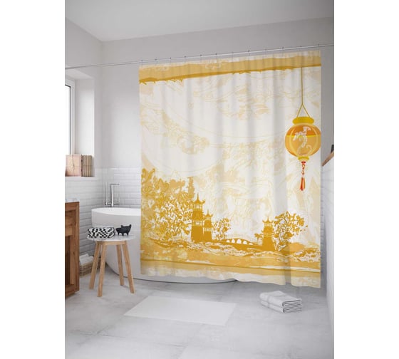 Штора (занавеска) для ванной JoyArty "Японский фонарь" из сатена, 180х200 см с крючками, sc_38777