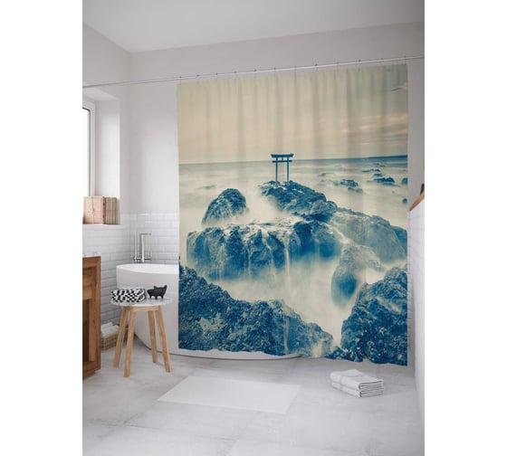 Штора (занавеска) для ванной JoyArty "Японский строб в шторм" из сатена, 180х200 см с крючками, sc_28400