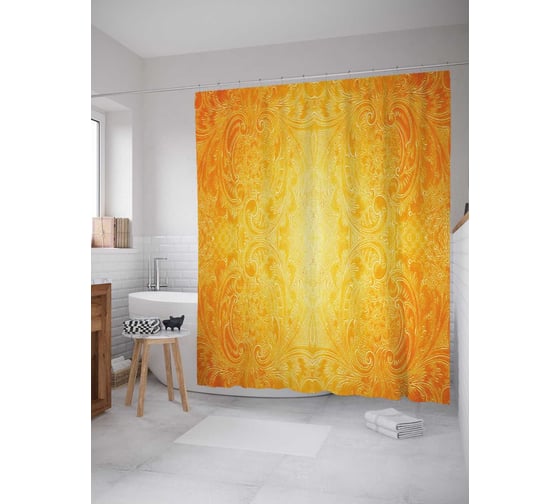 Штора (занавеска) для ванной JoyArty "Яркий орнамент" из сатена, 180х200 см с крючками, sc_17407