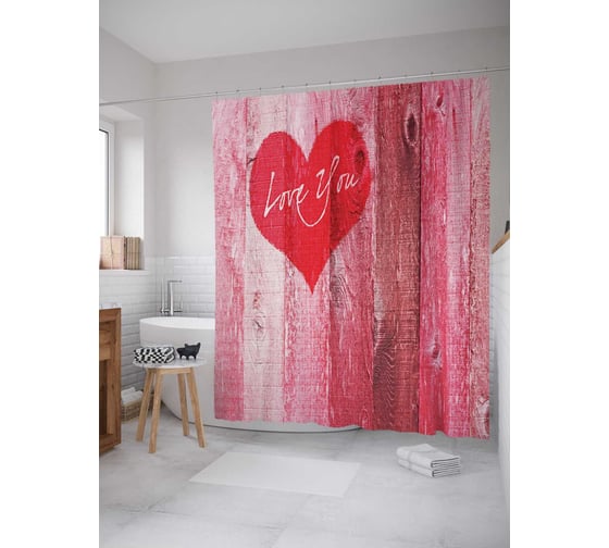 Штора (занавеска) для ванной JoyArty "Яркое признание" из сатена, 180х200 см с крючками, sc_16454