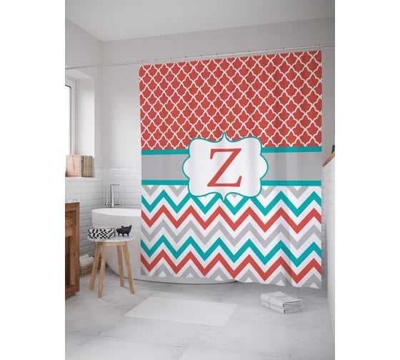 Штора (занавеска) для ванной JoyArty "Z с зигзагами" из сатена, 180х200 см с крючками, sc_5337Z