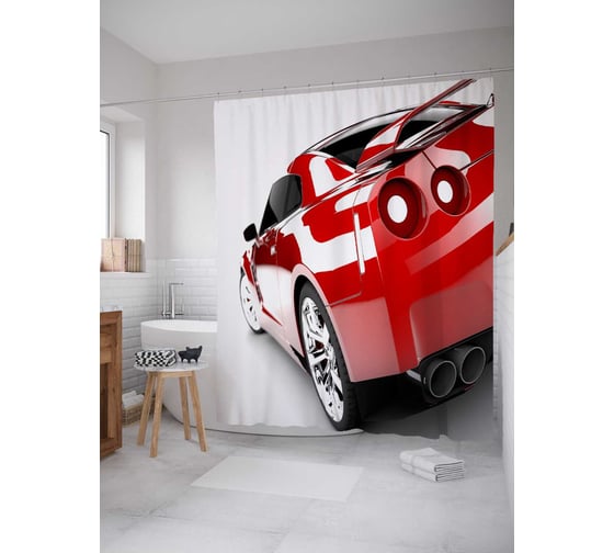 Штора (занавеска) для ванной JoyArty "За спорткаром" из сатена, 180х200 см с крючками, sc_37284