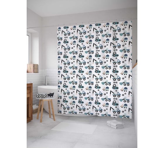 Сопутствующие товары для шторки-занавески JOYARTY Забавные Экскаваторы из сатена, 180х200 см с крючками