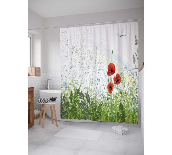 Штора (занавеска) для ванной JoyArty "Зачарованные маки" из сатена, 180х200 см с крючками, sc_18329
