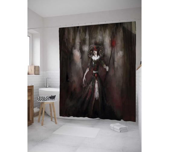Штора (занавеска) для ванной JoyArty "Загадочная леди" из сатена, 180х200 см с крючками, sc_31560