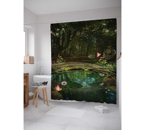 Штора (занавеска) для ванной JoyArty "Загадочное озеро" из сатена, 180х200 см с крючками, sc_4867