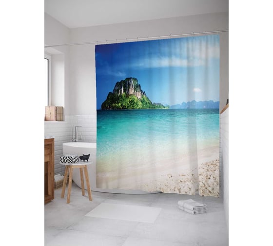 Штора (занавеска) для ванной JoyArty "Загадочный каменный остров" из сатена, 180х200 см с крючками, sc_15349