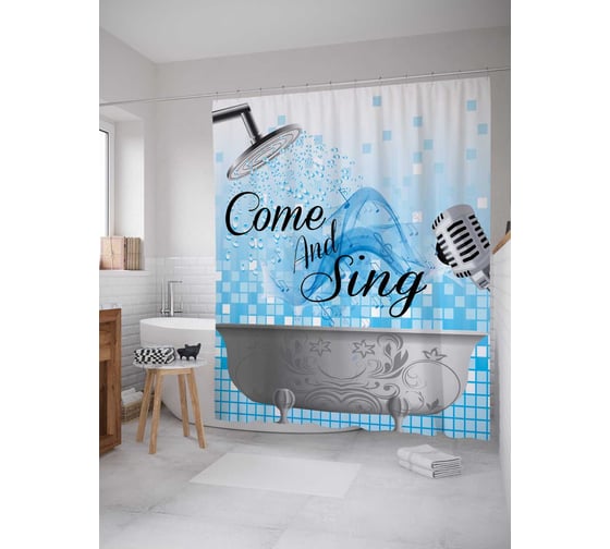 Штора (занавеска) для ванной JoyArty "Заходи и пой" из сатена, 180х200 см с крючками, sc_7390