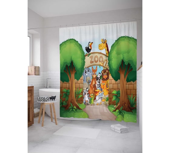 Штора (занавеска) для ванной JoyArty "Заходите в зоопарк" из сатена, 180х200 см с крючками, sc_26935