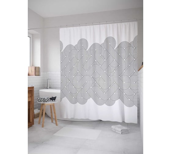 Штора (занавеска) для ванной JoyArty "Закругленный лабиринт" из сатена, 180х200 см с крючками, sc_20860