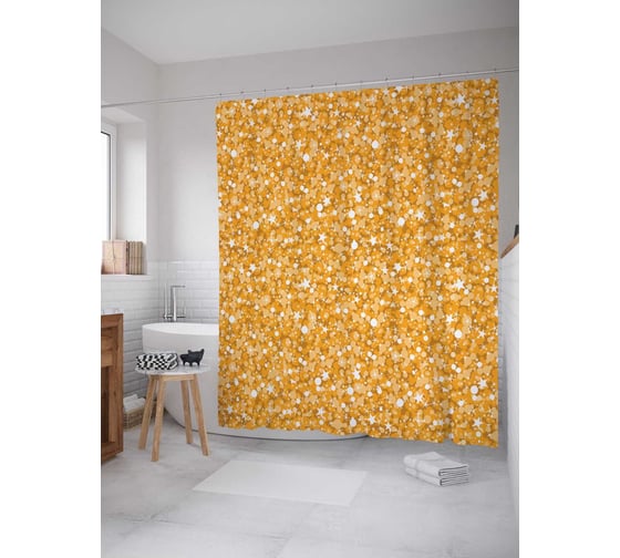 Штора (занавеска) для ванной JoyArty "Замечательная россыпь" из сатена, 180х200 см с крючками, sc_13423