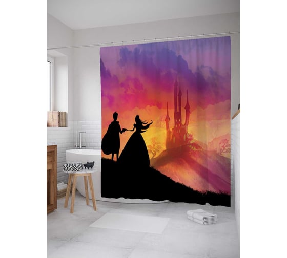 Штора (занавеска) для ванной JoyArty "Замок на закате" из сатена, 180х200 см с крючками, sc_31591