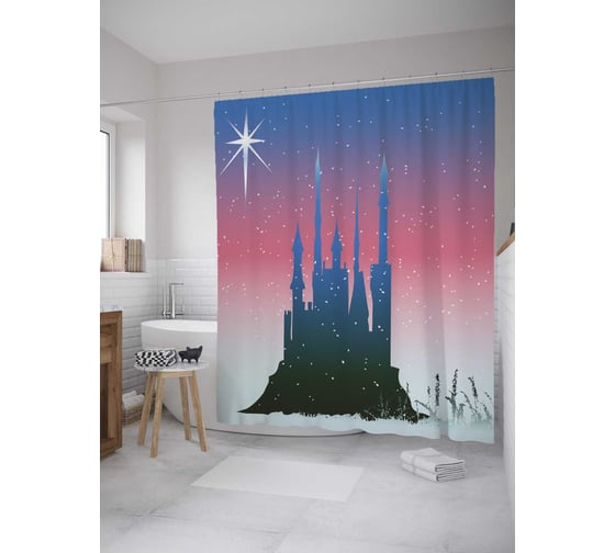 Штора (занавеска) для ванной JoyArty "Замок под звездой" из сатена, 180х200 см с крючками, sc_32505