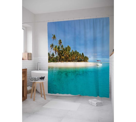 Штора (занавеска) для ванной JoyArty "Заплыв на остров" из сатена, 180х200 см с крючками, sc_9566