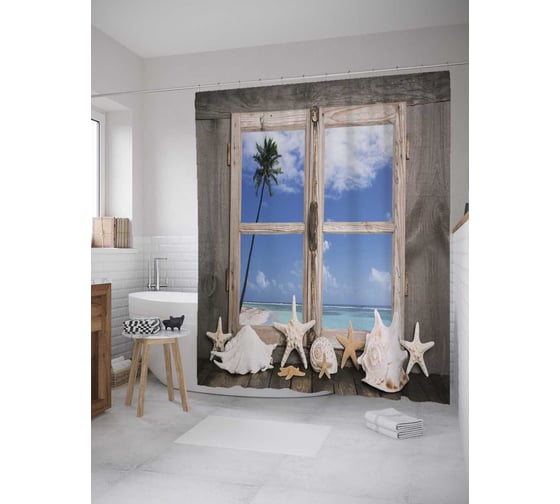 Сопутствующие товары для шторки-занавески JOYARTY Засушенные морские звезды из сатена, 180х200 см с крючками