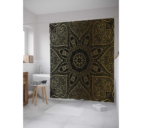 Штора (занавеска) для ванной JoyArty "Завитки Востока" из сатена, 180х200 см с крючками, sc_33869