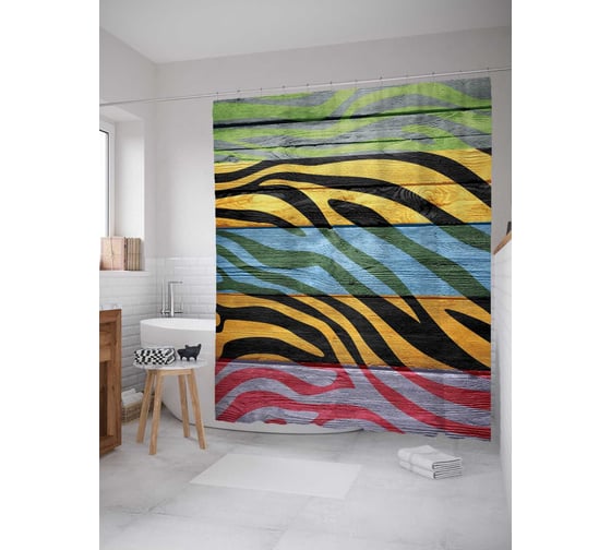 Сопутствующие товары для шторки-занавески JOYARTY Зебровый рисунок из сатена, 180х200 см с крючками