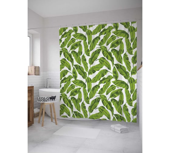 Сопутствующие товары для шторки-занавески JOYARTY Зелень тропиков из сатена, 180х200 см с крючками