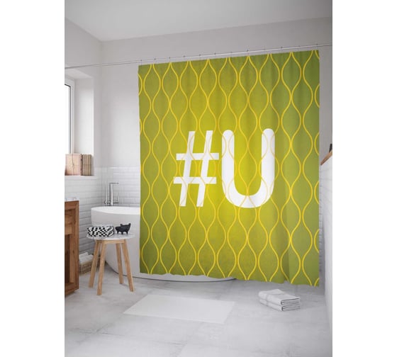 Штора (занавеска) для ванной JoyArty "Зеленая u с хештэгом" из сатена, 180х200 см с крючками, sc_3998U
