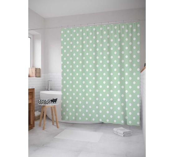 Сопутствующие товары для шторки-занавески JOYARTY Зеленый горошек из сатена, 180х200 см с крючками