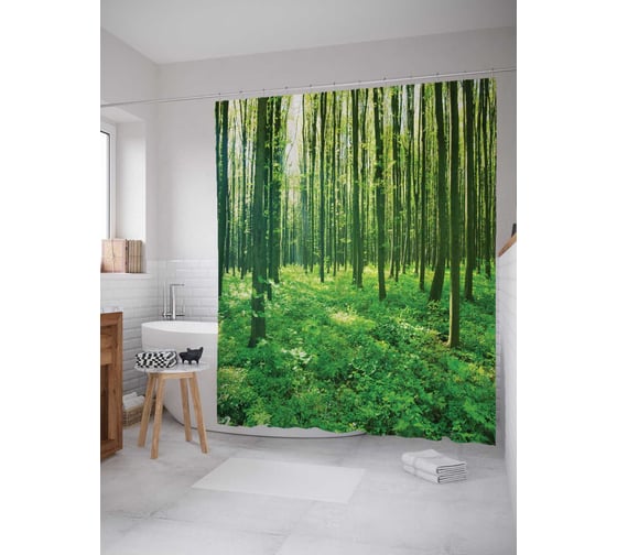 Сопутствующие товары для шторки-занавески JOYARTY Зеленый лес из сатена, 180х200 см с крючками