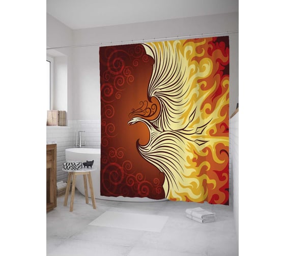 Штора (занавеска) для ванной JoyArty "Жар-птица" из сатена, 180х200 см с крючками, sc_27967