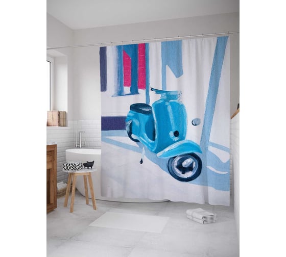 Штора (занавеска) для ванной JoyArty "Ждущий скутер" из сатена, 180х200 см с крючками, sc_15101