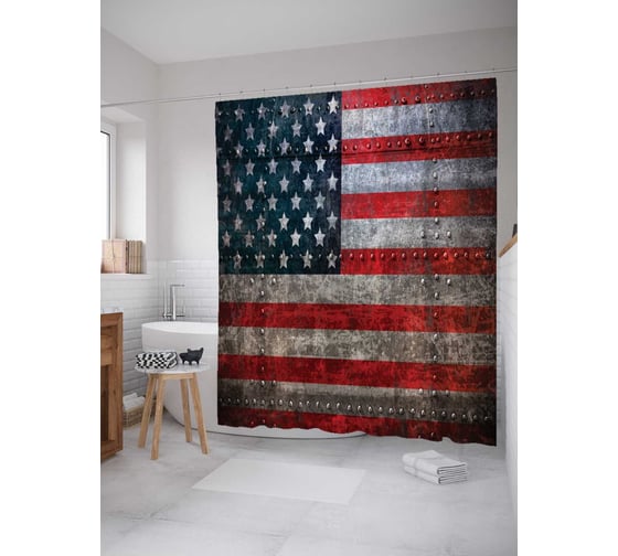 Штора (занавеска) для ванной JoyArty "Железный флаг" из сатена, 180х200 см с крючками, sc_20711