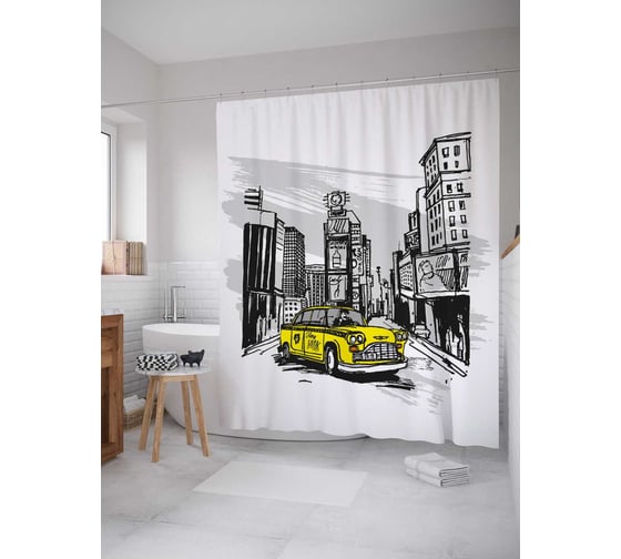 Штора (занавеска) для ванной JoyArty "Желтая машина" из сатена, 180х200 см с крючками, sc_29775