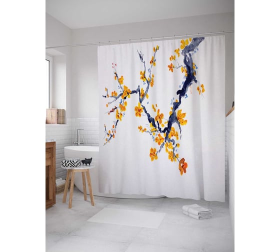 Сопутствующие товары для шторки-занавески JOYARTY Желтые цветы на ветке из сатена, 180х200 см с крючками