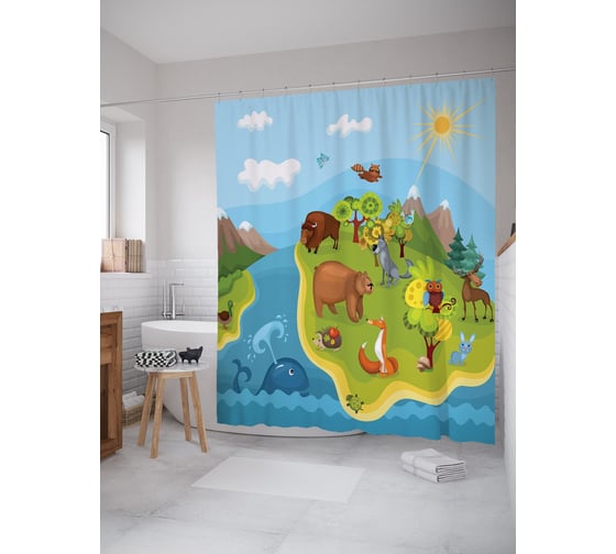 Сопутствующие товары для шторки-занавески JOYARTY Животный мир континентов из сатена, 180х200 см с крючками