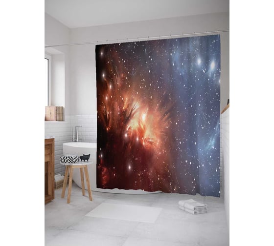 Штора (занавеска) для ванной JoyArty "Жизнь в космосе" из сатена, 180х200 см с крючками, sc_14490