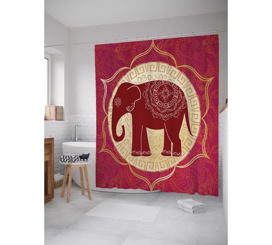 Штора (занавеска) для ванной JoyArty "Жизнерадостный слон" из сатена, 180х200 см с крючками, sc_7292