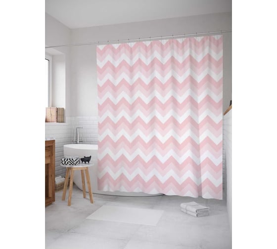 Штора (занавеска) для ванной JoyArty "Зигзаговые тени" из сатена, 180х200 см с крючками, sc_11623