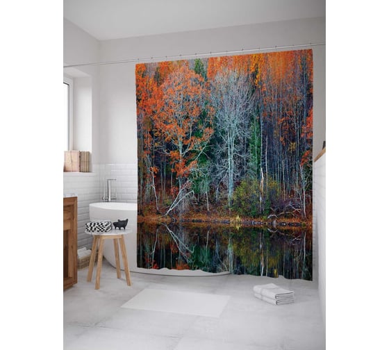 Штора (занавеска) для ванной JoyArty "Зима скоро" из сатена, 180х200 см с крючками, sc_16592