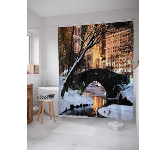 Штора (занавеска) для ванной JoyArty "Зимний город" из сатена, 180х200 см с крючками, sc_9614