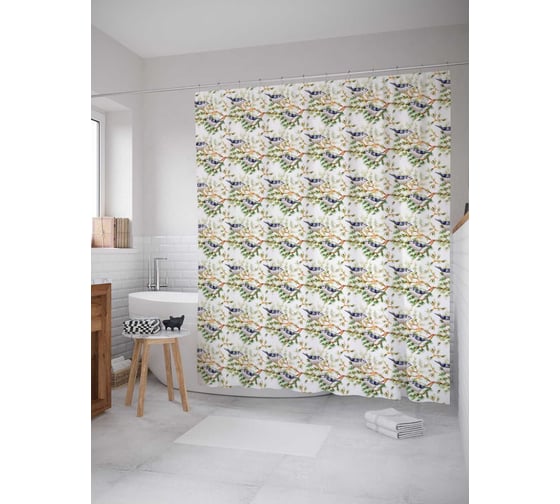 Штора (занавеска) для ванной JoyArty "Зимняя птичка" из сатена, 180х200 см sc_378417
