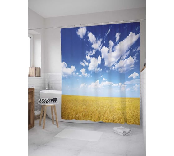 Штора (занавеска) для ванной JoyArty "Злаковое поле" из сатена, 180х200 см с крючками, sc_34762