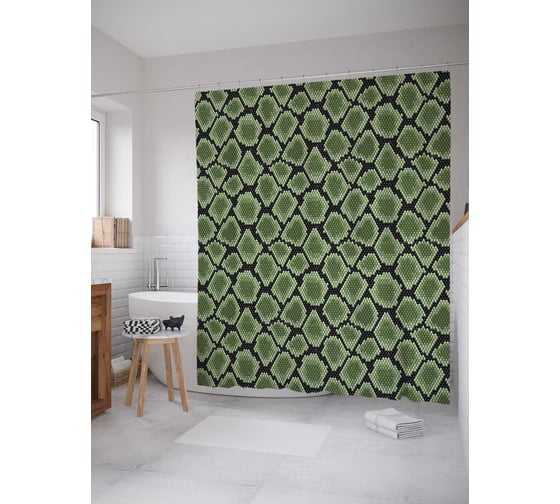 Штора (занавеска) для ванной JoyArty "Змеиная чешуя" из сатена, 180х200 см с крючками, sc_51584