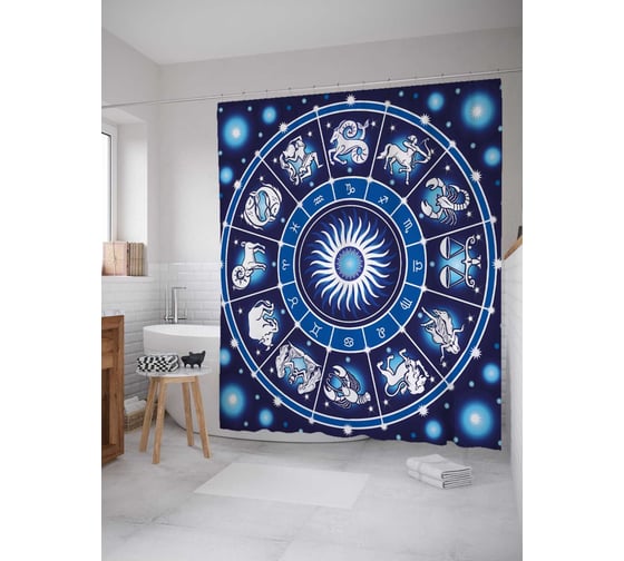 Штора (занавеска) для ванной JoyArty "Зодиакальные знаки" из сатена, 180х200 см с крючками, sc_18674