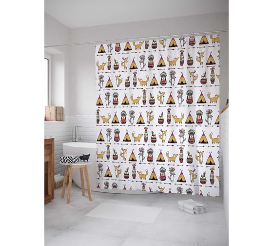 Штора (занавеска) для ванной JoyArty "Звери индейцы" из сатена, 180х200 см с крючками, sc_15490