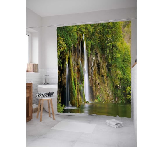 Отзывы о JOYARTY Водопад среди деревьев из сатена, 180х200 см с крючками