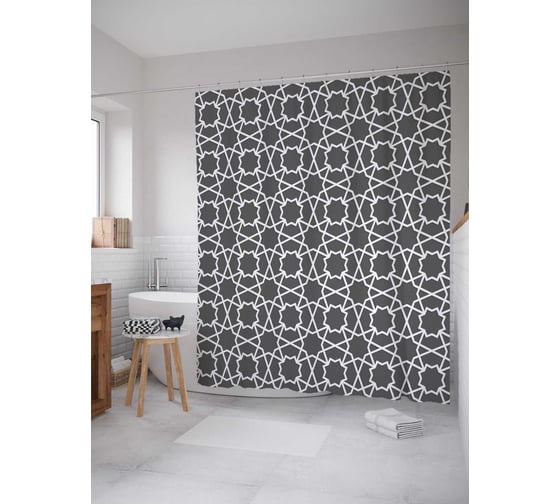 Штора (занавеска) для ванной JoyArty "Звездное плетение" из сатена, 180х200 см с крючками, sc_9487