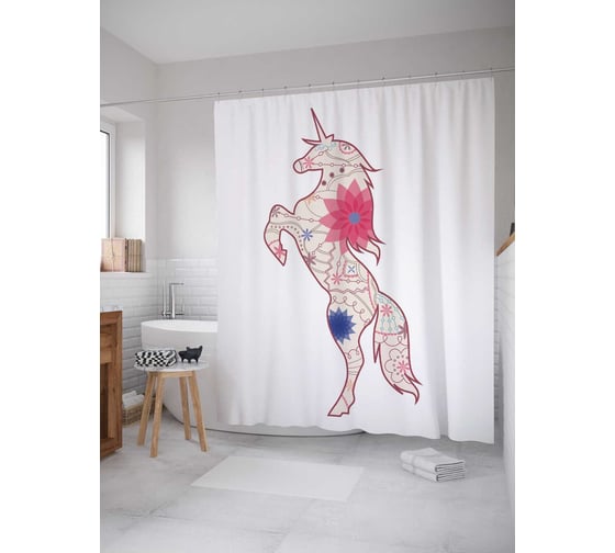 Штора (занавеска) для ванной JoyArty "Звездный единорог" из сатена, 180х200 см с крючками, sc_4966
