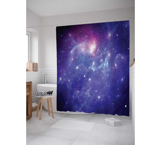 Штора (занавеска) для ванной JoyArty "Звездный хаос" из сатена, 180х200 см с крючками, sc_14491