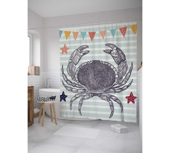 Штора (занавеска) для ванной JoyArty "Звездный краб" из сатена, 180х200 см с крючками, sc_8999